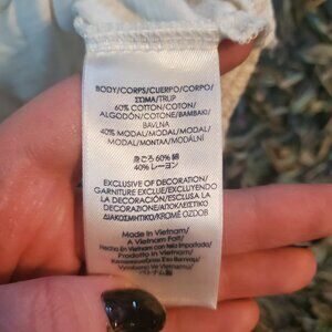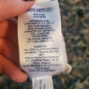 Chaps Boho peasant top with dark blue diamond embroidery and buttons. Sheer heathered fabric. Puffy sleeves. Stretch in the sleeves and bottom hem. Size XL.