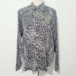 Chaps Women’s XL Button Front Shirt Leopard Animal Print 100% Cotton Long Sleeve