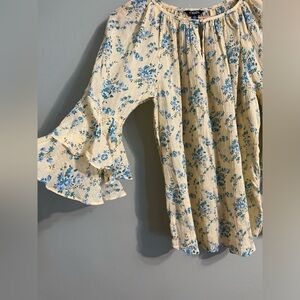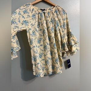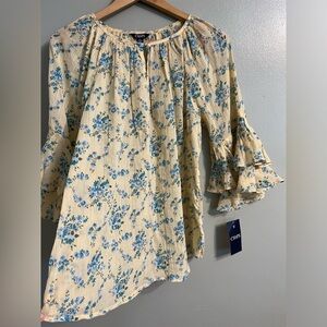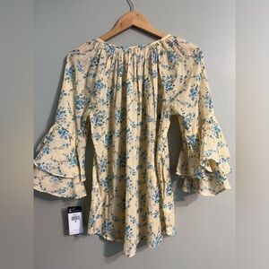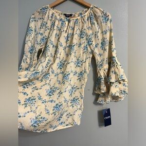 Chaps Womens Yellow Floral Boho Bell Sleeve 100% Crinkle Cotton Blouse Sz M NWT