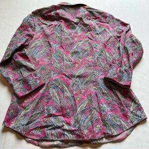Chaps Women's Button Down Shirt Pink/Blue/Yellow Floral Paisley Size Medium
