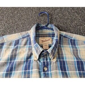Chaps Woolrich Button Up Shirts Men XL Lot of 2 Short Sleeve Pocket Plaid Cotton