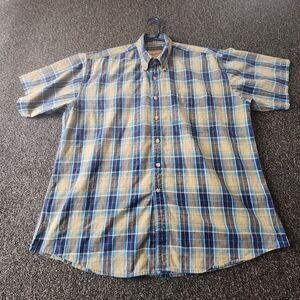 Lot of 2 Plaid 100% cotton short sleeve button down shirts in great colors both have front pocket and are XL.