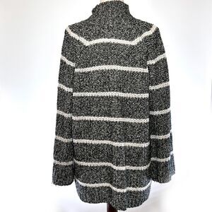 This Chaps Women's XL Sweater features a cozy chunky knit with black and white stripes and a mock neckline. Crafted from a blend of cotton and acrylic, it is perfect for warmth and style.