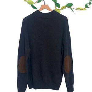 Chaps XL Elbow Patch Half Button Up Long Sleeve Knit Pullover Blue Sweater