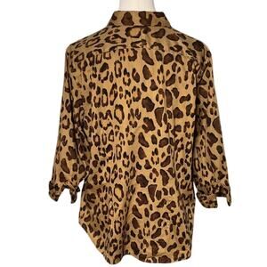 Chaps XL Leopard Print Button Front Cotton Blouse Long Sleeve Safari Shirt