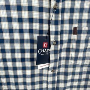 Keywords: Chaps, Mens, Shirt, Button Up, Long Sleeve, Plaid, Stretch, Casual, Dark Denim, XL, Extra Large, Untucked, Button-Down