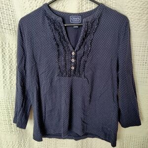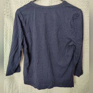 Chaps XL Navy Polka Dot Long Sleeve V Neck Blouse with Button Ruffle Det…