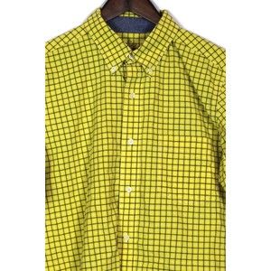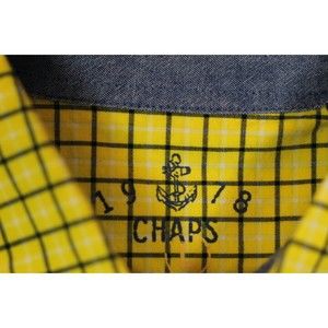 Chaps Yellow Black Check Men's Dress Shirt Short Sleeve Button Down Large 014
