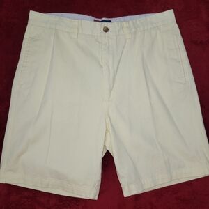 These yellow shorts by Chaps boast a sleek flat front design, ideal for smart casual occasions. Their vibrant color adds a pop of brightness to any outfit, making them a versatile wardrobe staple.
