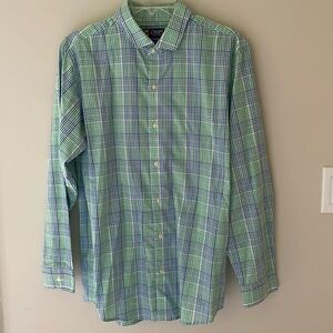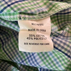 Chaps Youth Boys XL 18 20 Green Blue Plaid Button Down Dress Shirt Easy Care