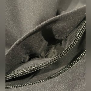 Great condition other than on the inside of one of the side pockets some of the threads are loose. I have listed a close up picture. This Jacket looks blue in all of the pictures with lighting but looks black In person. I have listed one pic without lights. Size medium, shell 100% polyester, lining- 100% nylon. Approximate flat lay measurements: chest- 24 1/2”, length- 29”, sleeve length- 25 1/2”.
