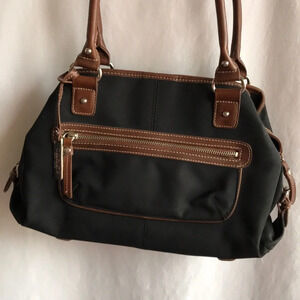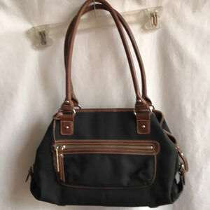 Chaps black nylon bag with brown trim, silver-tone hardware