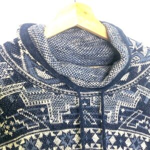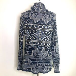 Chaps blue & white knit Aztec design cowl neck cotton sweater, size medium