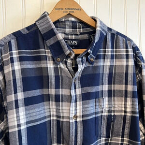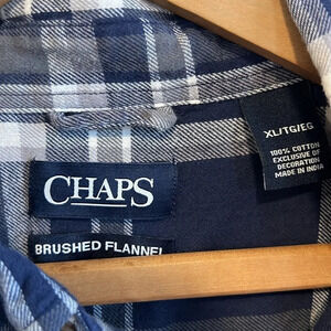 Chaps brushed flannel men's plaid blue white XL/TG/EG SHIRT button up