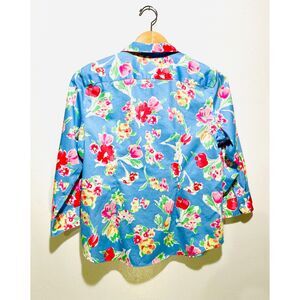 Chaps button up shirt no iron blue spring summer floral easter office casual women Lp