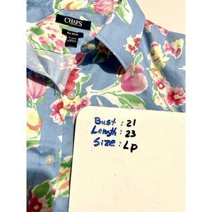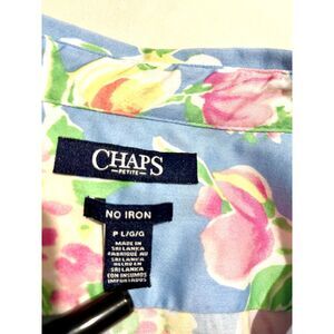 Chaps button up shirt no iron blue spring summer floral easter casual women Lp
