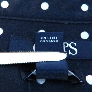 This beautiful Chaps button-down blouse combines classic tailoring with a fresh, feminine floral print. The navy background is accented with bright pink, green, and blue floral blooms—and the coordinating polka-dot contrast cuffs add the perfect playful touch. Made from 100% cotton and part of Chaps’ No-Iron collection, this top offers effortless style with zero fuss.