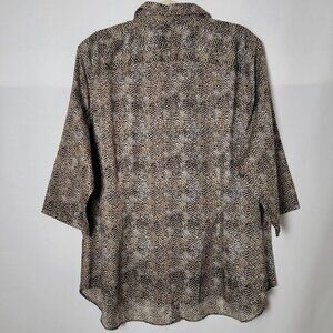 Chaps by Ralph Lauren Womens Leopard Cheetah Animal 3/4 Sleeves Button Up Top 2X
