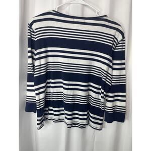 Chaps knit blouse shirt top women's XL extra large blue and white stripe cotton