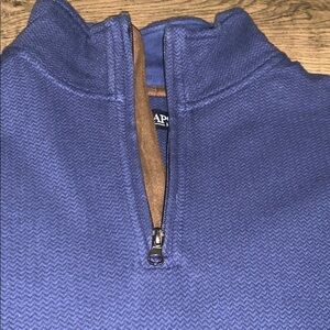 Chaps men’s quarter zip navy blue pullover with brown trim Size XXL