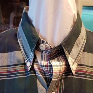 Chaps multi color plaid men's long sleeve button front shirt size L green, blue, red, yellow. white. and black