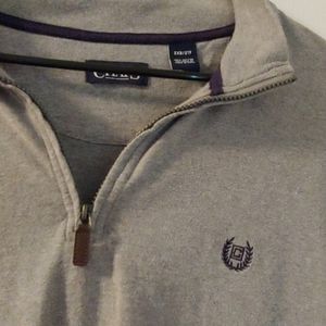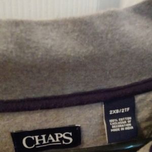 This listing is for a grey, lightweight Chaps pullover. 100% cotton so feels like you are wearing a t-shirt. It has a couple strings around bottom (see photo), otherwise in good used condition. Nice accents with leather zipper pull and slits on sides. Size 2XB which I believe it the same as 2X tall.