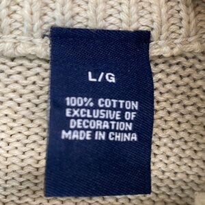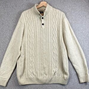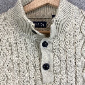 Chaps quarter button cable knit sweater L creamy oatmeal cotton prep fisherman