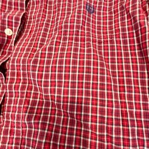 chaps long sleeve button down shirt, red plaid, size M, easy care. Good condition.