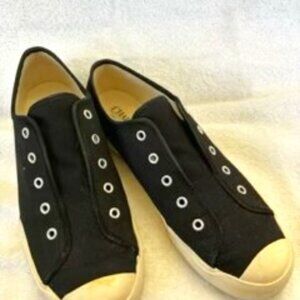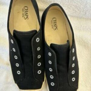 Chaps brand black canvas sneakers gently loved. Slide-in style with rubber soles. Elastic on tongues make for a comfortable fit