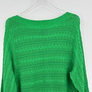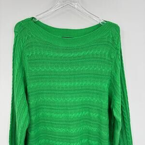 Chaps sweater 2X linen blend pullover boatneck pointelle knit kelly green