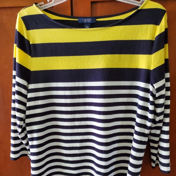Like new navy and yellow strip knit top! This top has 3/4 sleeves.