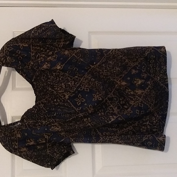 Chaps 100% Cotton top. Blue and gold multi design. Short sleeve, can becworn off the shoulder.