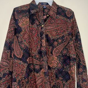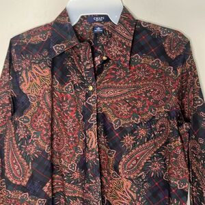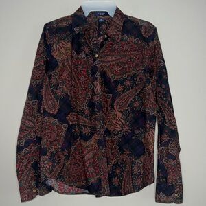 Chaps vintage paisley blouse button up down shirt top