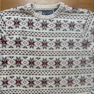 Chaps winter beige snowflake pattern mens crew sweater SIZE LT