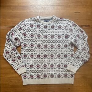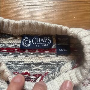 Item: Chaps winter beige snowflake pattern mens crew sweater SIZE LT