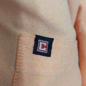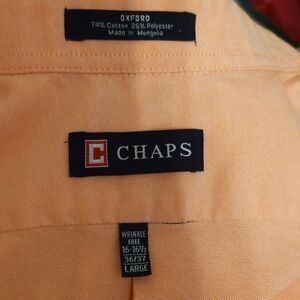 Chaps wrinkle free Oxford button down dress shirt, peach/coral, 74% cotton, L