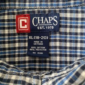 Chaps youth boys XL 18-20 cotton blend plaid print button down dress shirt