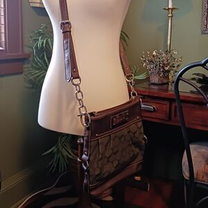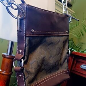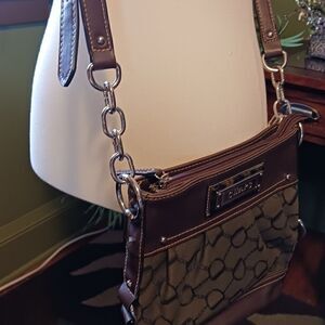 Stylish crossbody with silver chains. Zipper interior with 2 large pouches. Great condition Adjustable strap.