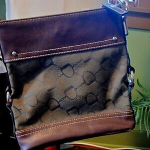 Chaps Crossbody Bag Green Fabric and Brown Vegan Leather