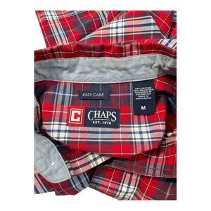 Elevate your style game with the Chaps Easy Care Red Plaid Short Sleeve Button Down Shirt in Men's Size Medium.