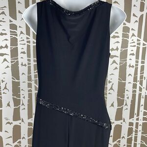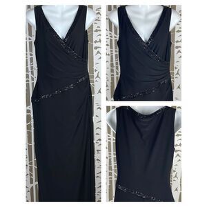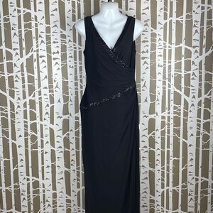 Chaps Evening Black Asymmetrical Sequin Accent Long Evening Gown sz 6