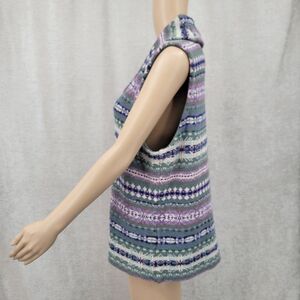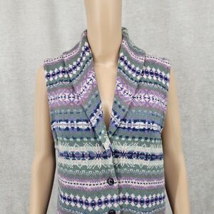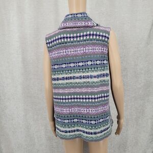 Chaps Fair Isle Purple Green Multicolor Knit Button Up Sweater Vest Shawl Collar