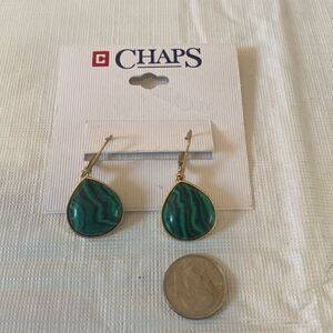 Chaps Marbled Malachite & Gold Toned Teardrop Earrings.