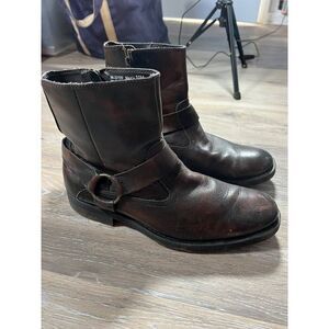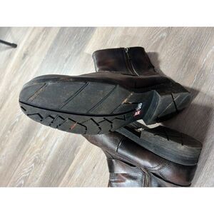 Chaps Mens 10M Leather Upper Ankle Boots W/ Side Zippers & Buckle Strap - Brown