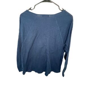 Chaps Navy Blue Long Sleeve T-Shirt With Crochet Sleeve