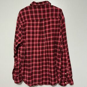 Classic red plaid design. Button-down style. Perfect for casual wear.