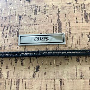 Chaps unique designed wallet/wristlet in a tan cork print with specks of metallic gold, brown faux leather trim and tan stitching. Chaps silver logo on front with snap closure. Inside is dark brown fabric lined with 6 card slots. Height 5” x Width 7 1/2” x strap 6 1/4”. Like new.