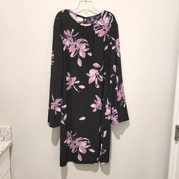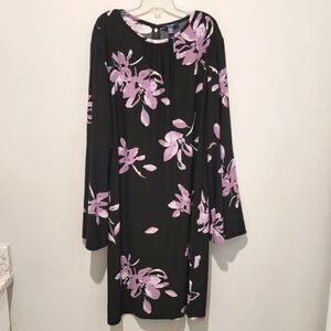 Chaps floral print bell sleeve dress l. Zip back closure.