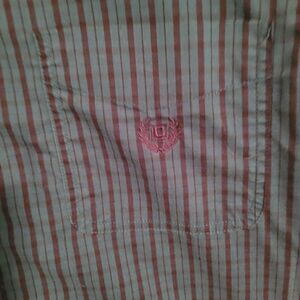 Super nice shirt! Front pocket and button cuffs. Made with 68% cotton and 28% polyester and 4% elastane materials. Very soft feeling. Tag says XL