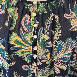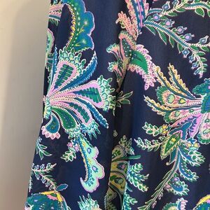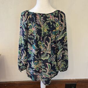 Chaps navy blue green pink floral long sleeve sheer blouse Size XL EUC